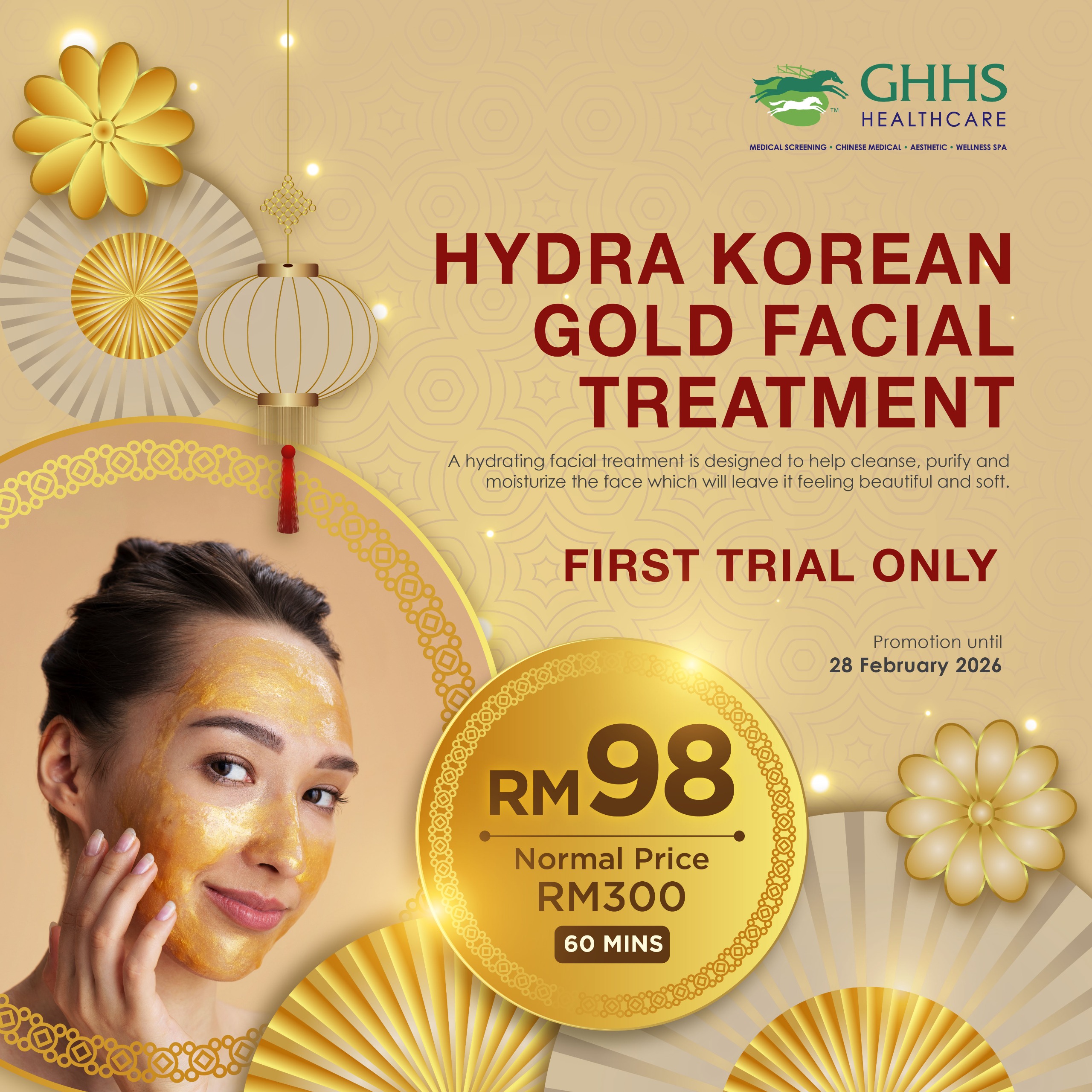 Celebrate the Year of the Horse with our Hydra Korean Gold Facial, cleanse, purify, and deeply hydrate for soft, smooth, glowing skin. WhatsApp Me to shine beautifully this New Year!