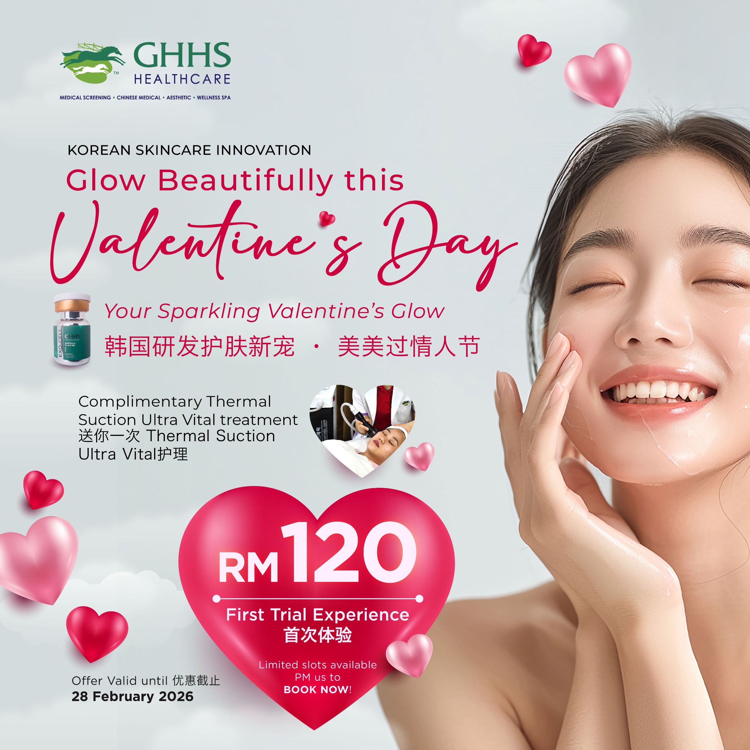Hydrate, purify & shine beautifully with our Korean Gold Facial + complimentary Thermal Suction Ultra Vital treatment. Limited slots until 28 Feb 2026! WhatsApp Me to pamper yourself